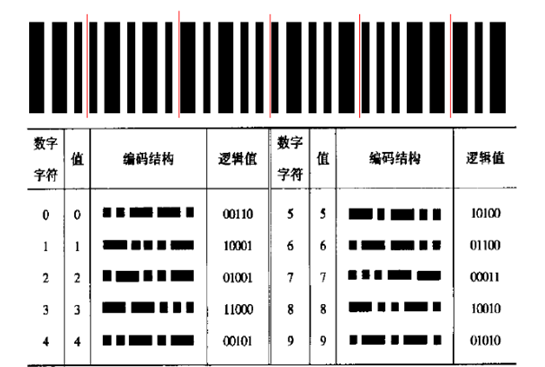 只能表示0-9十个数字字符,每个字符由5位二进制码编码,其中有且仅有两位为二进制的“1”1这就是25码名称的来历。