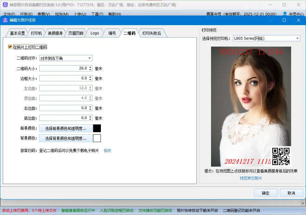 打印任务重支持设置电子照片自动上传,并支持打印二维码到纸质照片,扫描二维码即可下载电子照片