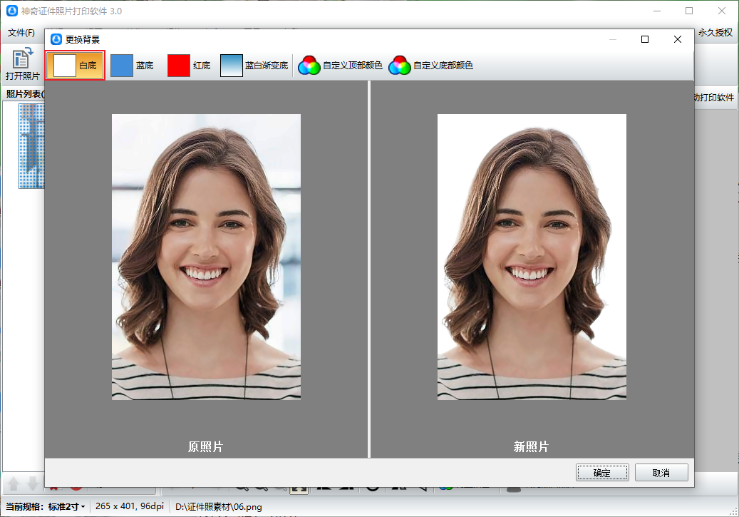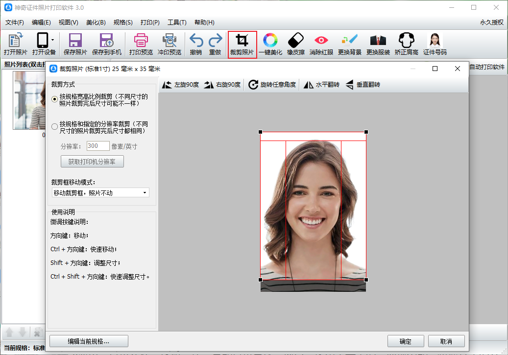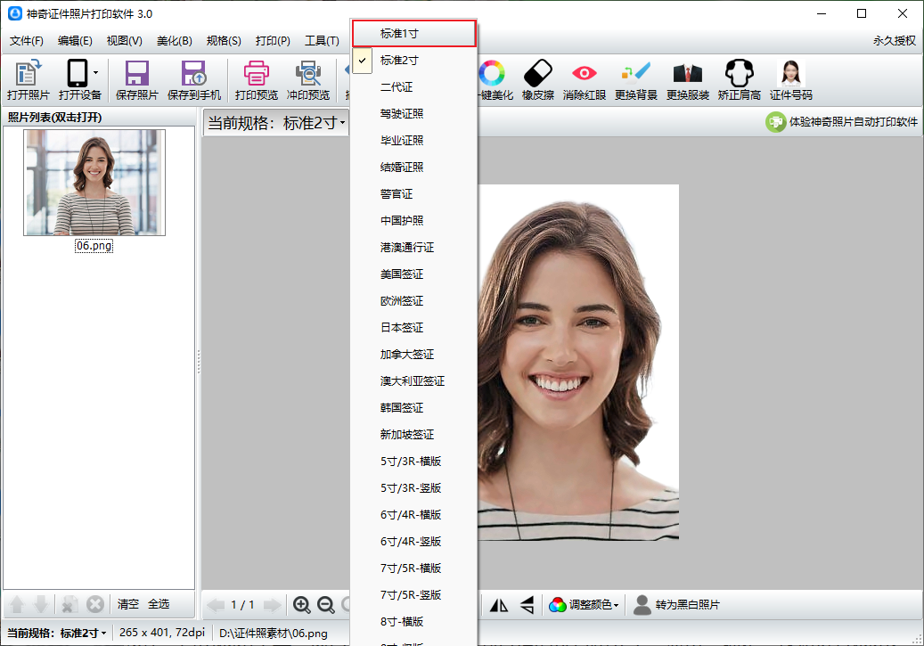 这种专业的证件照软件里包含大多数的证件照尺寸,只需根据要求进行选择,然后裁切即可,制作出来的照片尺寸一定是标准的。