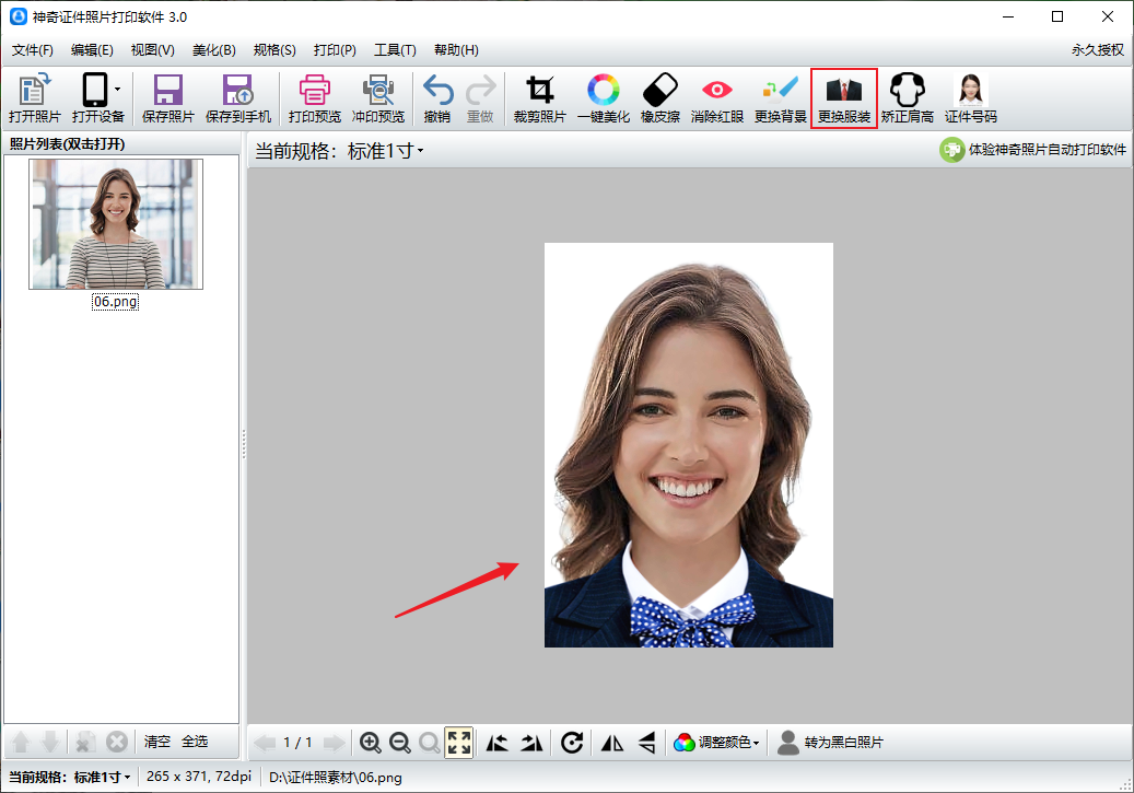 如果觉得证件照不是很正式,还可以更换正装,如下图所示。