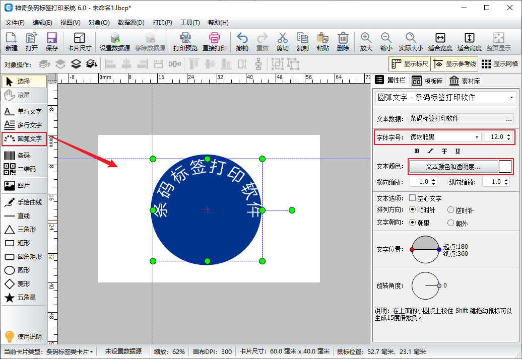 在设计制作标签时,每个客户的设计要求都是不同的,比如文字的排列,有的客户需要制作扇形文字,也叫做弧形文字。条码打印软件是可以实现的,关于怎么设置弧形文字的角度,方向等,小编下面就和大家介绍一下制作方法。