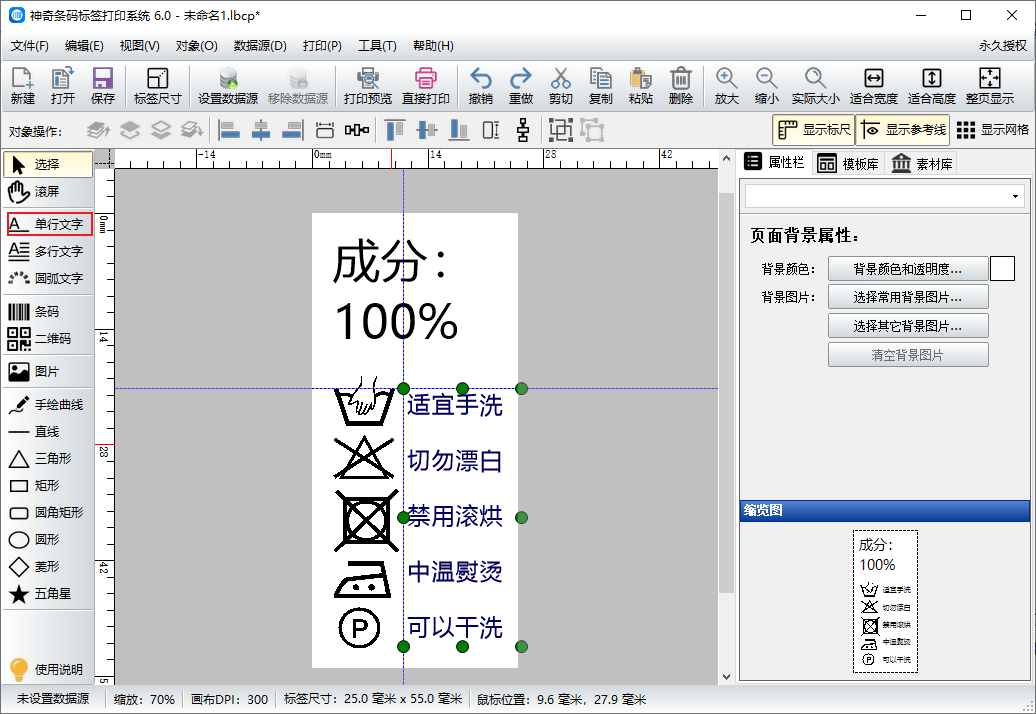 水洗标,主要是让消费者能够从原料的成分和含量,洗涤方法两方面进行参考,在穿着的过程当中进行正确保养。水洗标实质上也是一种标签,只是在材料上跟普通纸质的标签有所区别。下面我们就使用条码软件设计制作水洗标。