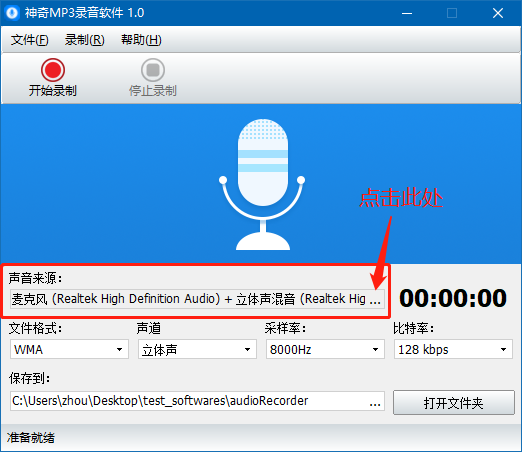 点击“停止录制”,则本次录制将结束,同时生成对应文件格式的文件,可以点击弹出界面中“打开文件位置”查看录音文件;也可以点击软件界面上的“打开文件夹”查看。