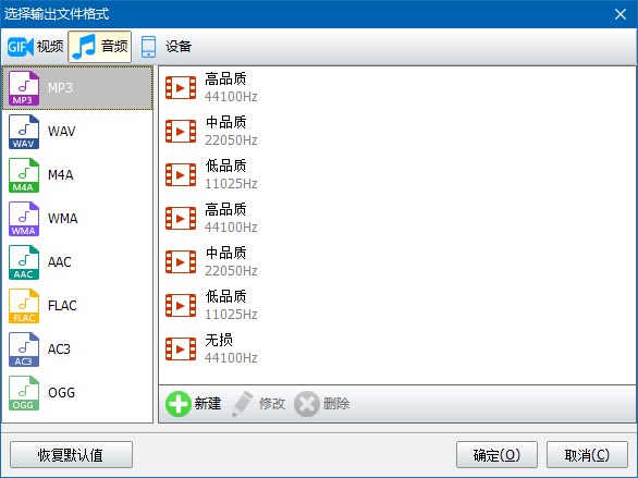 在功能模块中选择“格式转换”模块,选中之后,界面如下图所示: