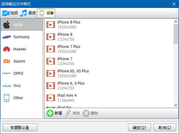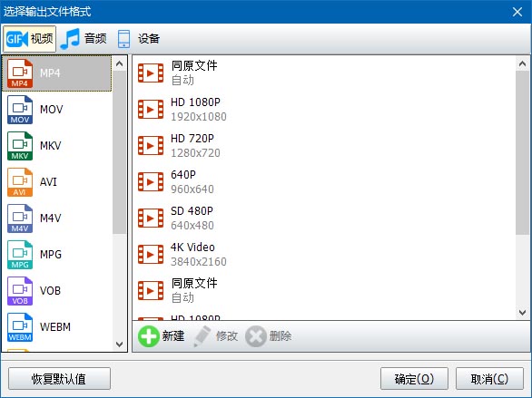 第二步:选择输出文件格式,即想要将当前视频转换成哪种类型;